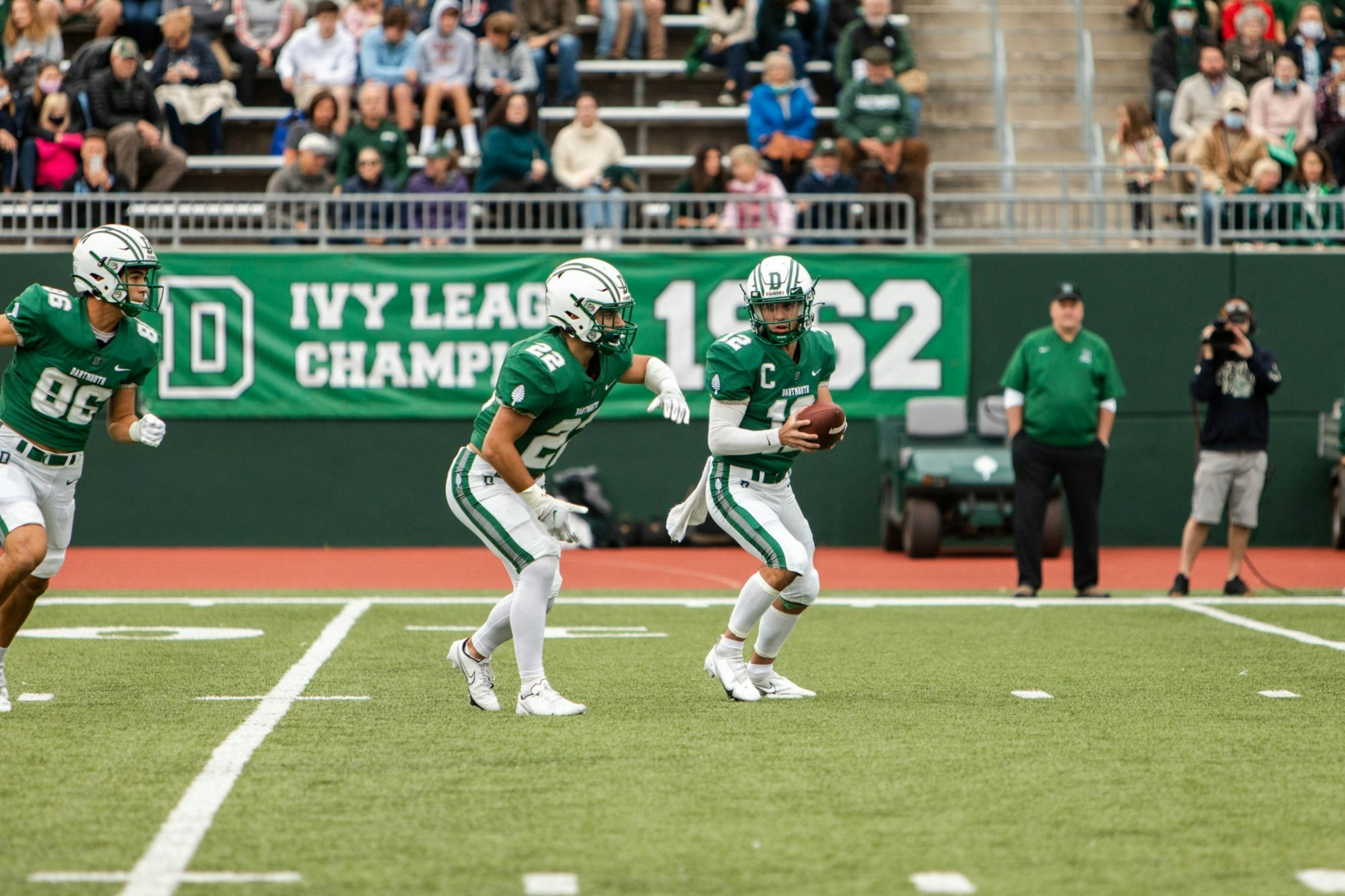 With the Ivy League championship on the line, Dartmouth football traveled down to Providence on Saturday to face off against the Brown University Bears. The Big Green took over in a dominant second half, cruising to a 52-31 victory and claiming a share of the 2021 Ivy League title.