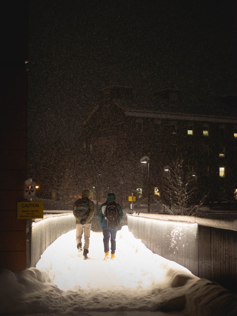 Snow arrives on campus without regard for schedules or syllabi, slipping into the spaces students usually hurry through. Walkways narrow, buildings recede, and the familiar becomes briefly unfamiliar. Between one class and the next, time stretches just enough to notice breath in the air, light in windows and the sound of footsteps softened by snow. These photographs linger in that in-between moment, where movement continues, but urgency fades, and the campus learns to move at winter’s pace.