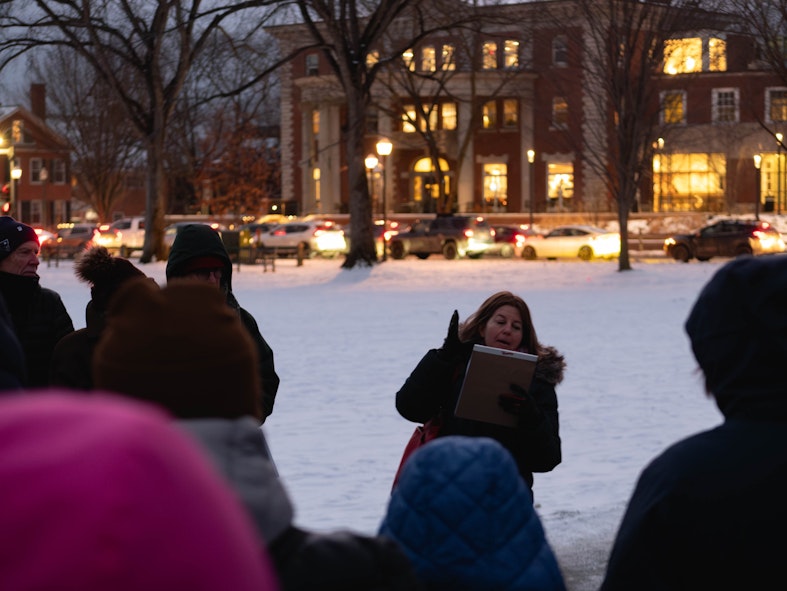 Before the event, organizers placed plastic candles and paper lanterns around the Green and distributed pamphlets with resources about approaching ICE agents to attendees.
