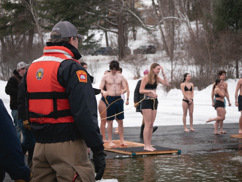 A member of the Hanover Fire Department supervises students preparing to partake in the Polar Bear Swim. HFD was one of many agencies on scene ensuring that students participated in the Feb. 6 event safely.
