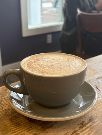 Still North has a lovely store and location. The music is always good, and the bookstore environment is cozy. However, the mocha was not good. The layer of foam was thin. The drink itself was bitter and salty. Yes, salty. There was a distinct lack of a chocolate taste and no sweetness at all to add some flavor. It was watery and quite flavorless, without the typically strong, bitter taste of espresso. The strongest flavor I could taste was something like peanut.