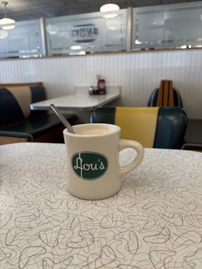 The next day I went to Lou’s and sat in one of their comfortable booths. It was a Tuesday, so the only other people eating were a few retirees and a father and his two little kids. The mocha did not have much foam and the drink was not thick. The chocolate taste was not too strong, and it tasted more chocolate milk-y than hot chocolate-y. It was very sweet and a little fruity. The espresso taste was weak. Though it was tasty, it just didn’t really taste like a mocha.