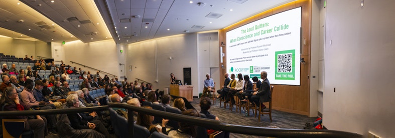 Five lawyers shared their experiences of “loud quitting” — openly leaving a company to draw attention to a workplace or political issue — from elite law firms to protest the Trump administration in a March 3 forum hosted by the Tuck School of Business.