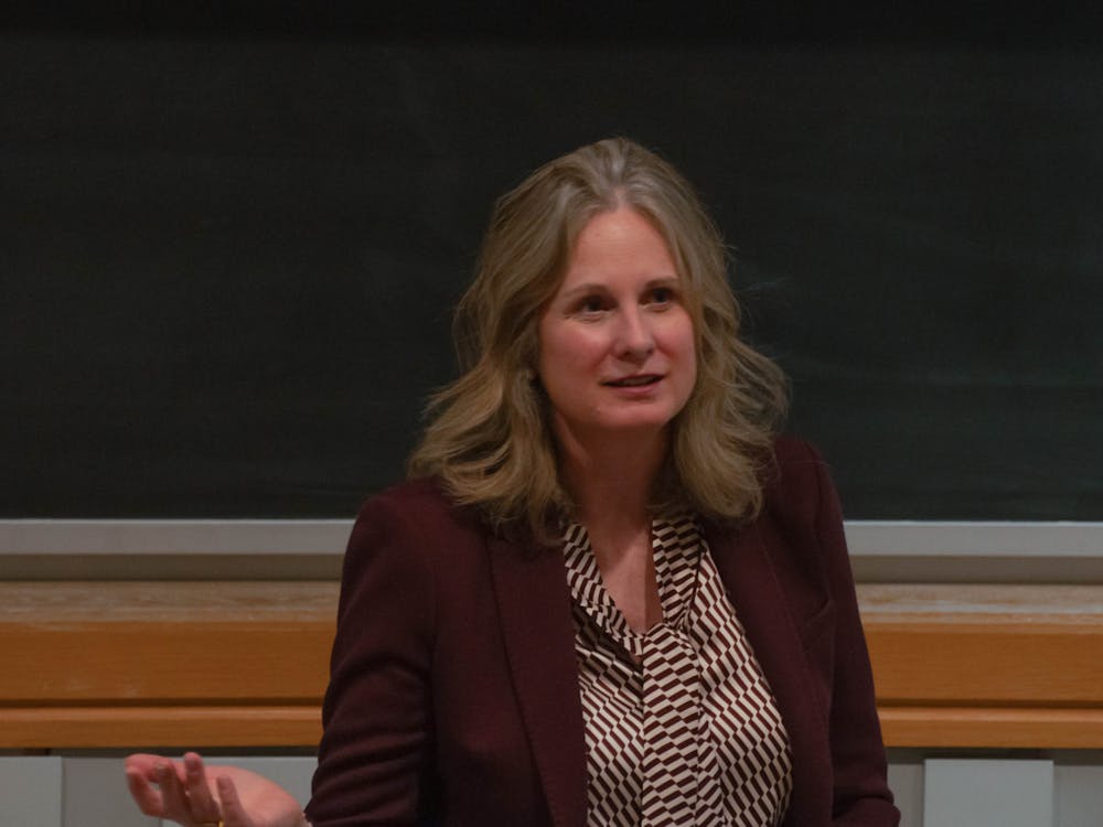 011426-ronaksamuel-lindevent.jpg Associate professor of government Jennifer Lind speaks during an event covering her newly released book “Autocracy 2.0: How China’s Rise Reinvented Tyranny.”
