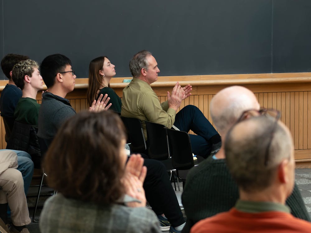 040726-dregonzales-bobbixby-2.jpg Students, professors, and community members clap as Robert Bixby is introduced on April 7 in the Rockefeller Center's Hinman Forum.