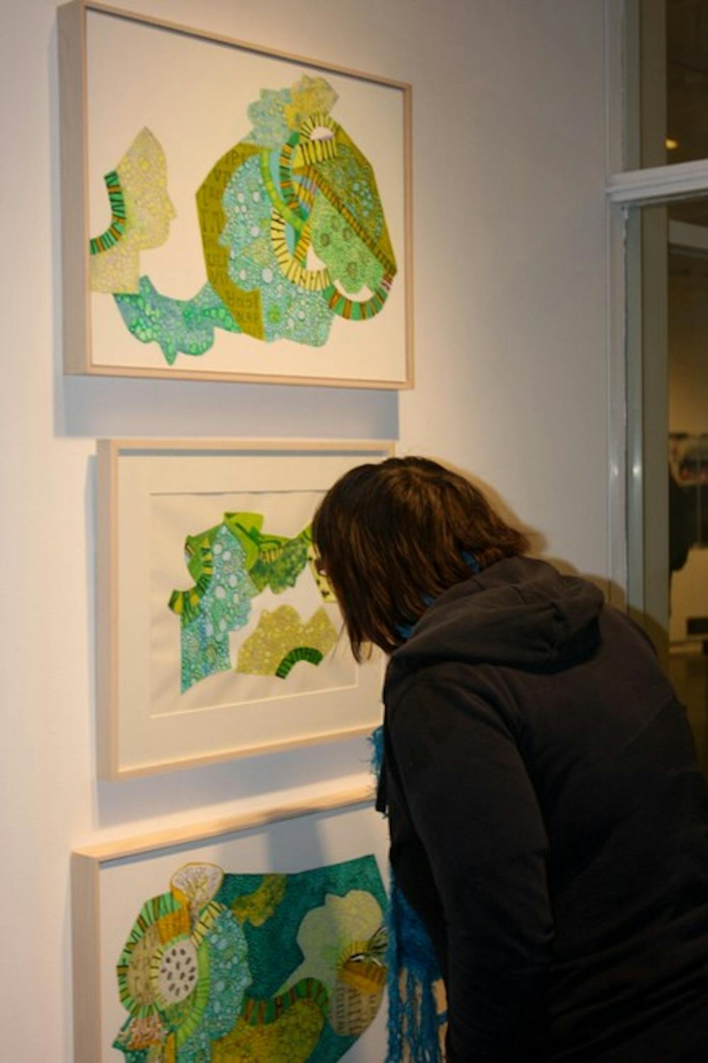 image Esm Thompson's exhibition of paintings and collages, on display at the Strauss Gallery, brings vibrant colors and patterns to the Hop.