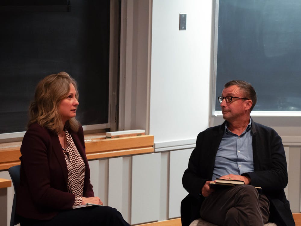 011426-ronaksamuel-lindevent-2.jpg Associate professor of government Jennifer Lind speaks with news website Semafor managing editor Andrew Browne during her book event.