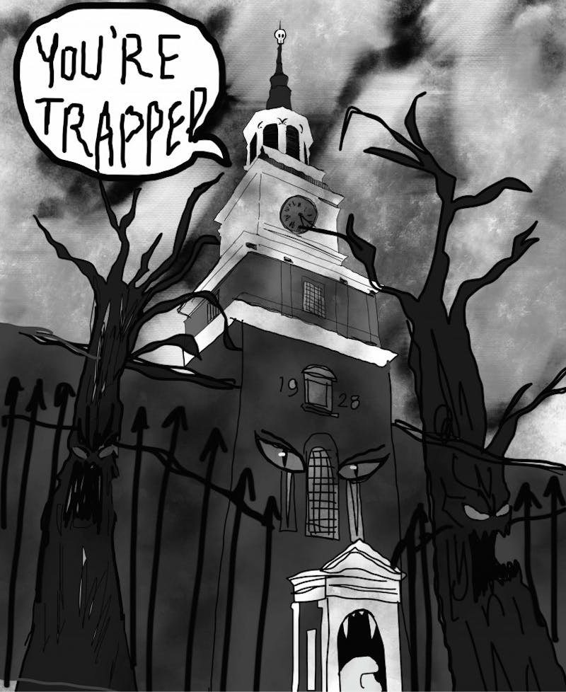Ramsey Alsheikh ’26 and Eli Moyse ’27 imagine the desk of a messy College administrator.