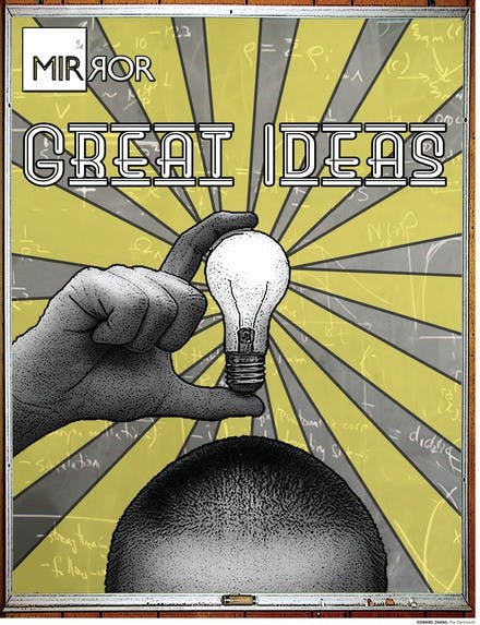 As both a creative writing major with a thesis to finish in mere weeks and a writer for the illustrious Dartmouth Mirror, I have some experience trying to come up with creative ideas.